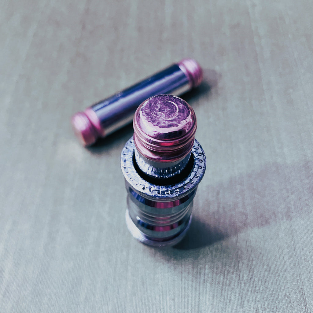 The Smashed-Alien Proto-Clacker (w/ Tungsten, SS, Crystal-Ti, Copper, Steel & Nickel) comes in a velveteen drawstring-pouch for easy storage & transport.